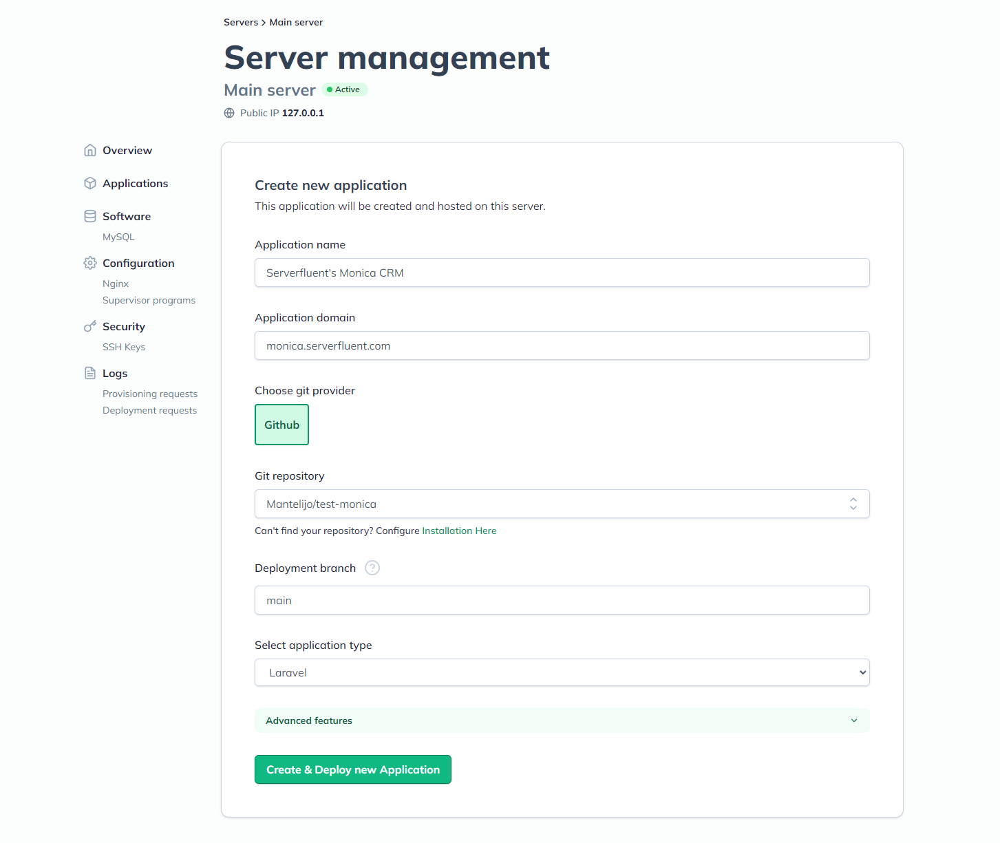 Serverfluent can manage your application deployments on servers provisioned via Serverfluent.