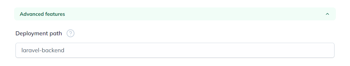 You can customize your application deployment path relative to the root of repository. This is helpful in monorepo structure or when your actual application entrypoint - for example the Laravel application resides in a non root directory on your repository. Provided deployment path will be set as the root directory of all deployments for this application.